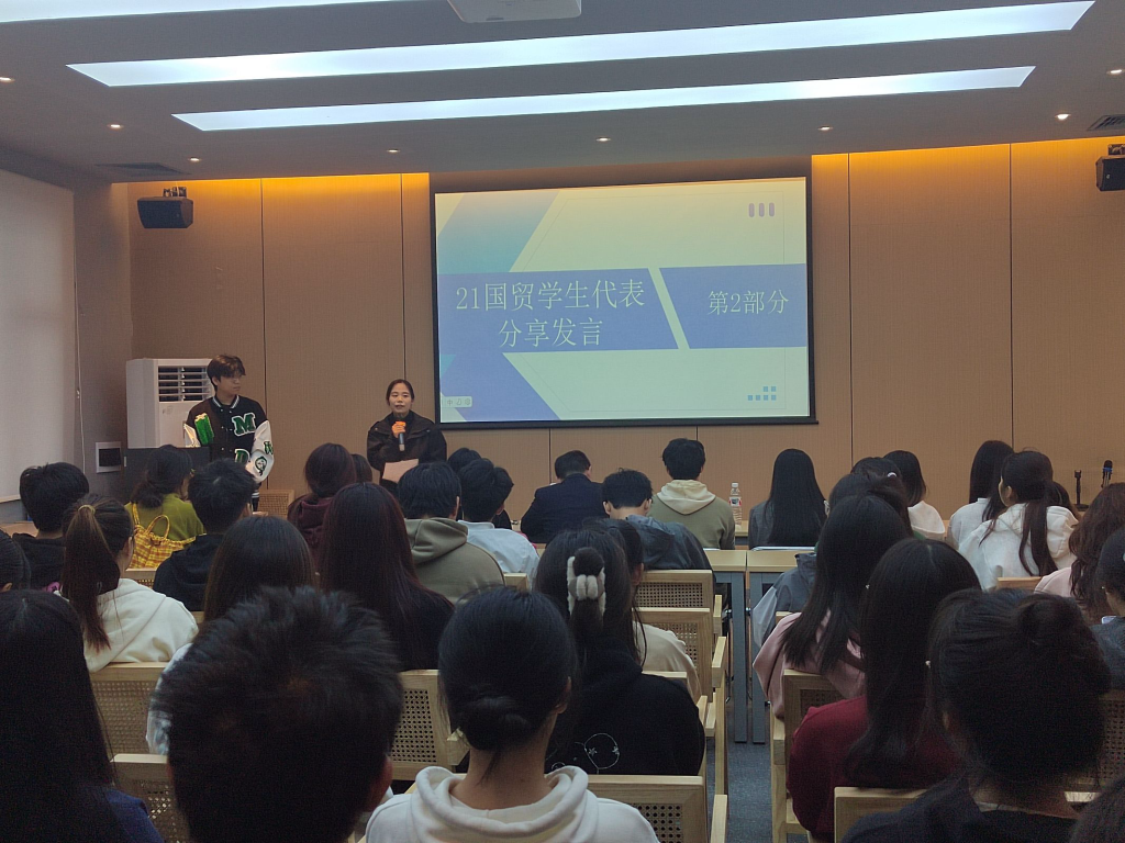 在交流会上,2021级国贸专业的学生代表围绕实习工作和面试等话题,结合自身的求职经历与大学生活,向低年级同学传授了宝贵的经验与感悟。班级助理赵欣欣深情回顾了自己的大学生活,她强调:“大学四年时光匆匆,我深刻体会到努力学习与及早规划的重要性。良好的学习风气不仅为我们营造了优异的学习环境,更为我们的未来发展奠定了坚实的基础。我希望学弟学妹们能够珍惜大学时光,不断充实自己,为未来做好充分准备。”