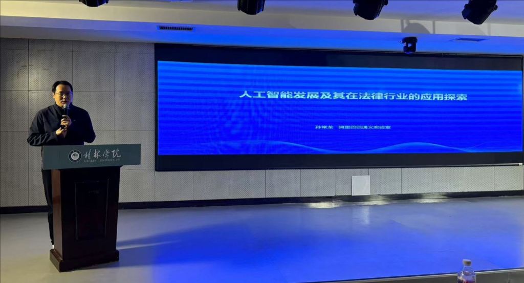 为深入学习贯彻习近平总书记关于人工智能发展的重要指示精神,促使广大法学专业师生深刻认识到人工智能与法律行业发展的深度融合,助力法学人才高质量培养,11月27日,金融与法律学院特邀阿里巴巴技术总监、阿里巴巴通义实验室NLP(自然语言处理)应用算法团队负责人孙常龙在我校至善讲堂做“人工智能发展及其在法律行业的应用探索”主题讲座。本次讲座也是学院法学专业“数字法治”的首场活动。学院院长、应用法学教研室教师及法学专业百名学生参加了本次讲座。