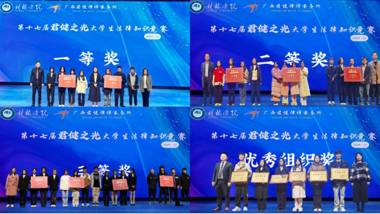 随着颁奖典礼的结束,第十七届“君健之光”大学生法律知识竞赛圆满落下帷幕。这次活动不仅加强了桂林高校之间的友谊,提升了大学生的法律素养,也见证了校企协同育人模式的合作成果。