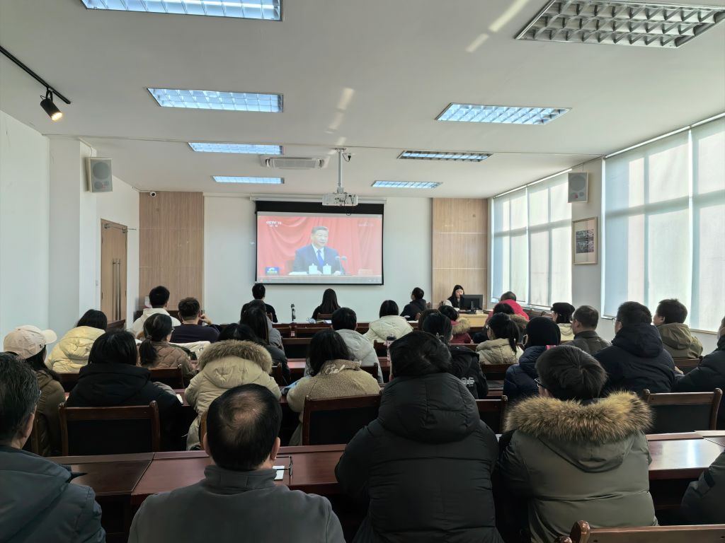 会议最后,学院院长总结讲话。她回顾了学院在过去一年中的工作情况和取得的显著进步,包括学科建设、教学质量提升、师资队伍建设等。她表示,学院成绩的取得,离不开每一位教职工的辛勤付出和共同努力,对全体教职工表达了感谢。在布置2025年的工作时,院长提出了“用心、细心、齐心”的工作理念。她希望大家不畏困难,勇于挑战自我,不断提高个人认知;在工作中要细心严谨,确保每一项工作都能高质量完成;同时,要加强团队协作,形成合力,共同为学院的发展贡献力量。