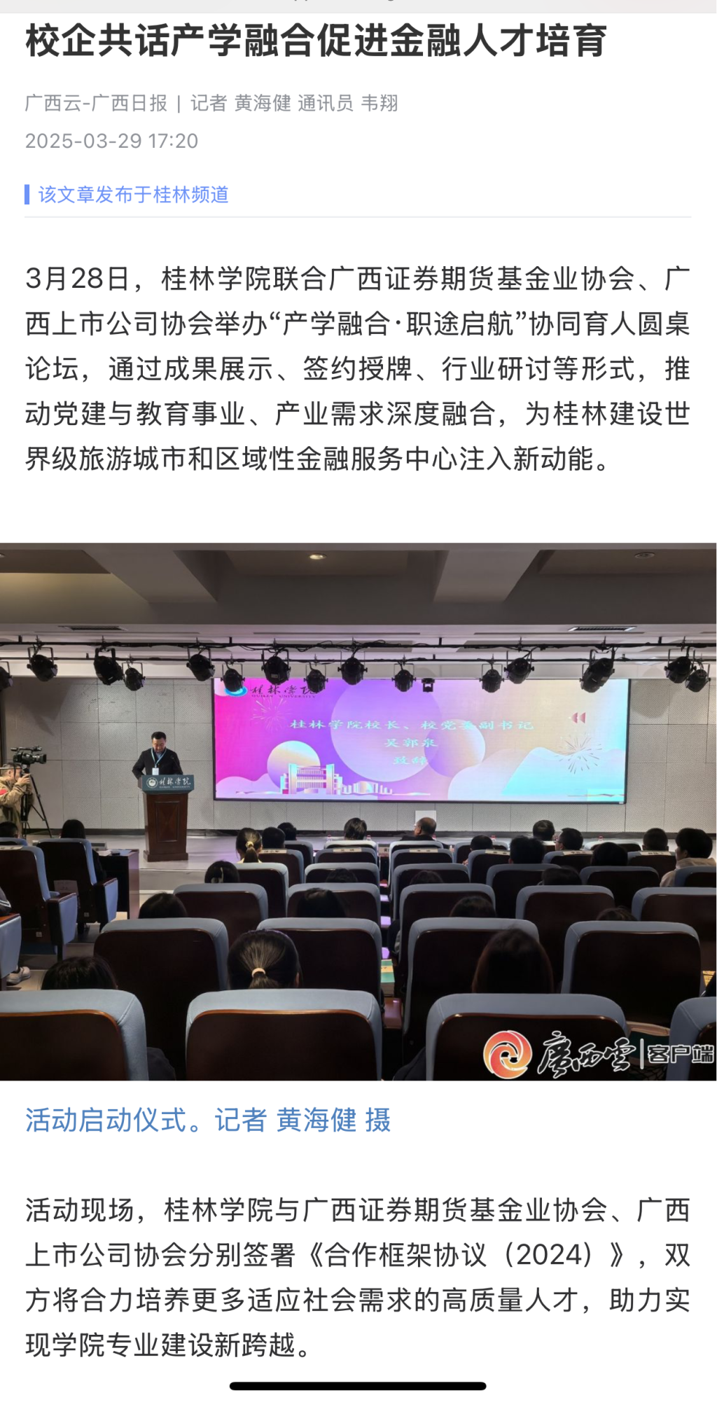 广西云-广西日报:《校企共话产学融合促进金融人才培育》