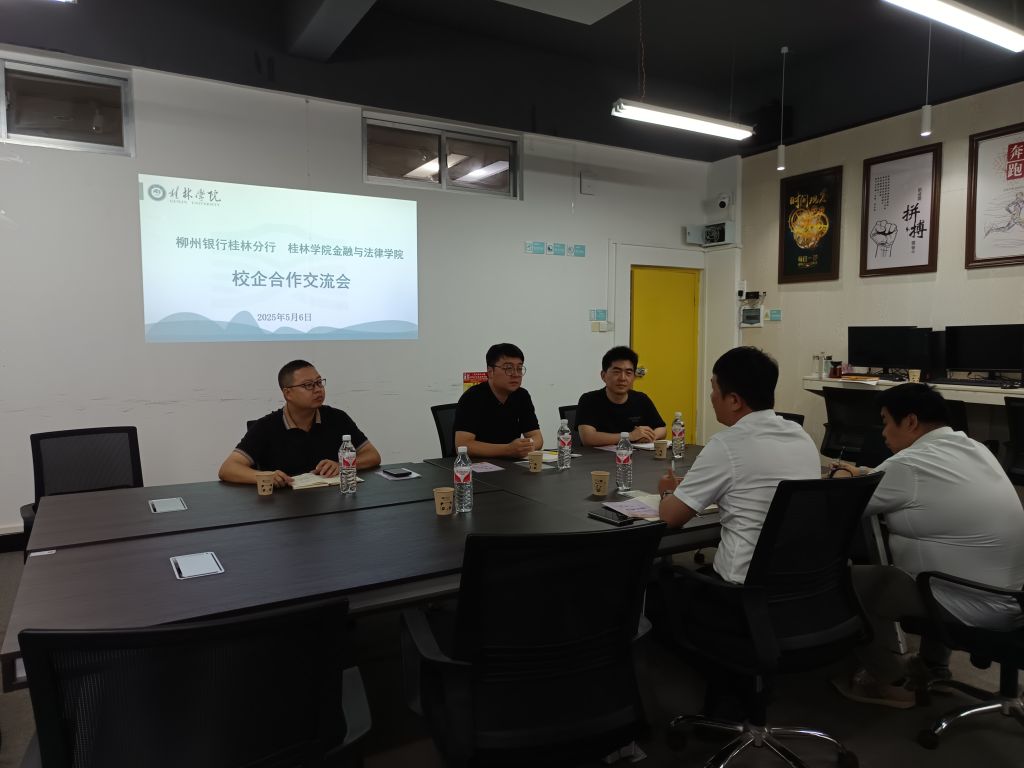 为拓展毕业生就业渠道,共商产教融合与人才培养新路径,5月7日上午,柳州银行桂林分行副行长、公司部副经理一行到访金融与法律学院,双方于3207会议室举行校企合作交流会。学院党总支书记、副书记、相关专业负责人参会。