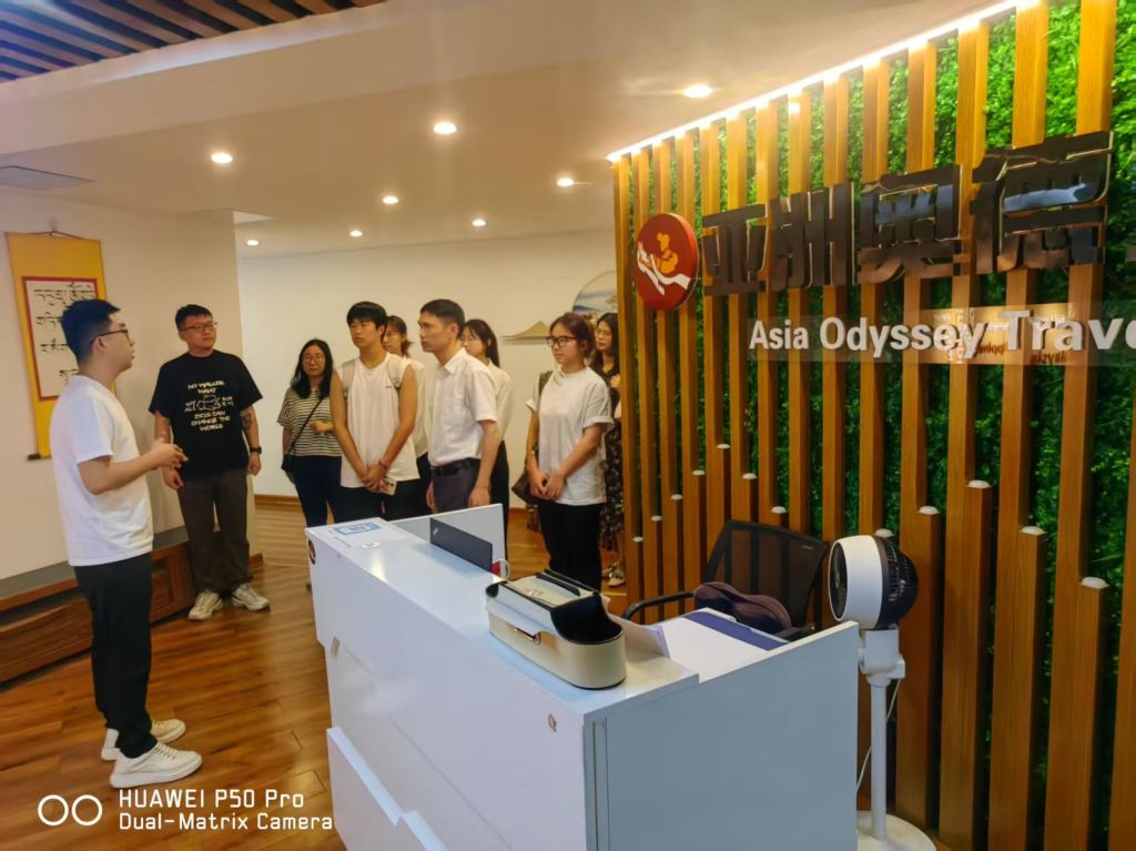 奥德赛公司总经理申云飞对学院师生团队的到来表示热烈欢迎。在交流过程中,申云飞总经理详细介绍了公司的组织架构、核心业务板块以及独特的企业文化,让师生们对奥德赛公司有了全面而深入的了解。随后,他亲自带领师生们实地参观了公司的运营现场,从业务操作流程到客户服务环节,一一进行讲解,使师生们直观地感受到了旅游行业的实际运作情况。