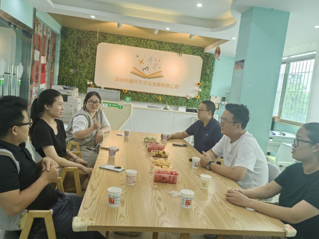 在深圳市智开放文化发展有限公司,梁业佳经理对我们的到来表示热烈的欢迎,随后双方就学院人才培养特色及深入推进校企合作等方面进行深入交流。学院党总支书记就人才培养模式、专业设置、实习实践等方面进行了详细的介绍,梁经理表示校企合作是提升学生实践能力、打通就业渠道的关键举措,希望双方未来在产教融合、就业育人、学生实践等方面深化合作,拓宽校企合作协同育人方式。