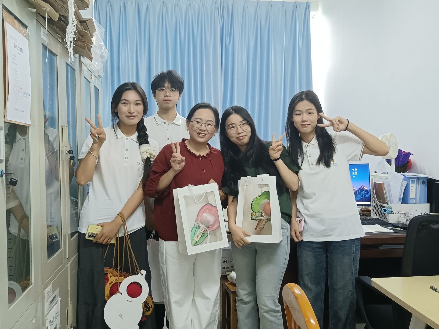 考虑到教师日常工作辛劳,团总支特别准备了艾草养生锤作为贴心礼物。锤身填充天然艾草,外层包裹透气棉麻,兼具舒缓疲劳、放松身心的功效。“老师常常为备课、批改作业熬夜,希望这个小小的锤子能让他们在课间或工作之余敲一敲肩颈,缓解疲惫。”礼物虽轻,却承载着学子对老师“工作顺利、身体健康”的朴素祈愿。