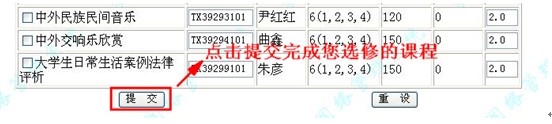 (五)提交选修课程,完成选课。