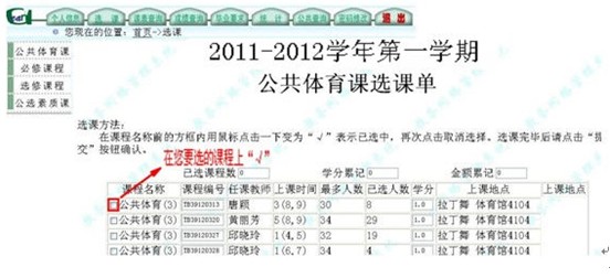 (二)请同学们按本专业课程表上的公共体育课程时间进行选课。如出现所选课程的上课时间与实际上课时间不一致的,所选课程无效。