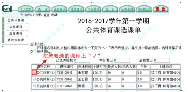 (二)请同学们按本专业课程表上的公共体育课程时间进行选课。如出现所选课程的上课时间与实际上课时间不一致的,所选课程无效。