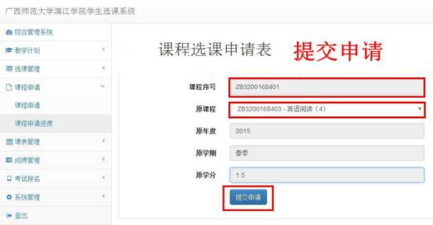 (一)重新学习(含重考)课程选课申请表提交后,可通过“课程申请进度”可查询申请的审批情况,也可以撤销申请。