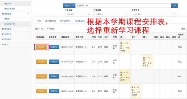 (四)根据课程安排表选择重新学习(含重考)的课程;