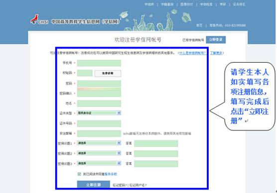(2)未注册的学生,只有在平台完成注册后方可登陆学信档案。