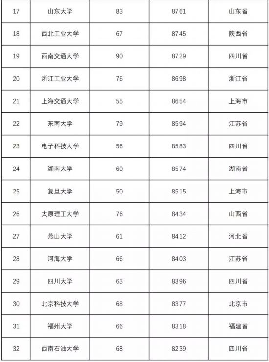 2018年全国普通高校竞赛排行结果(本科)TOP100