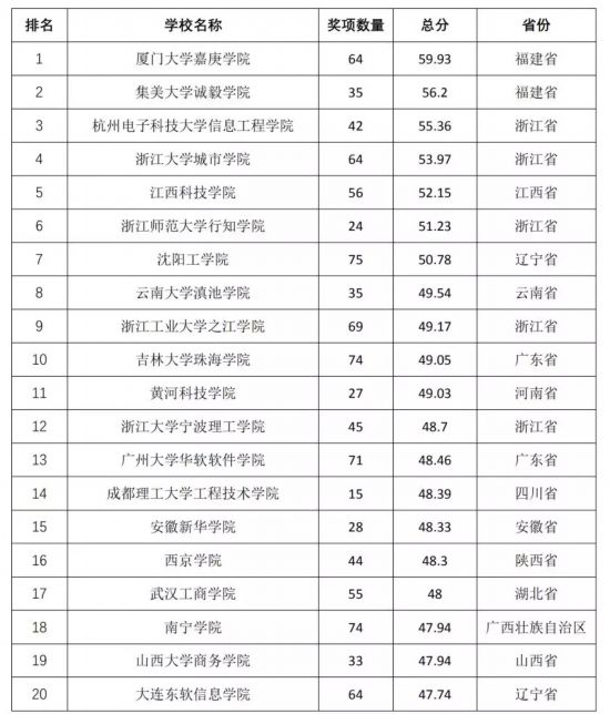 2014-2018年“民办及独立学院”学科竞赛排行结果(本科)TOP20