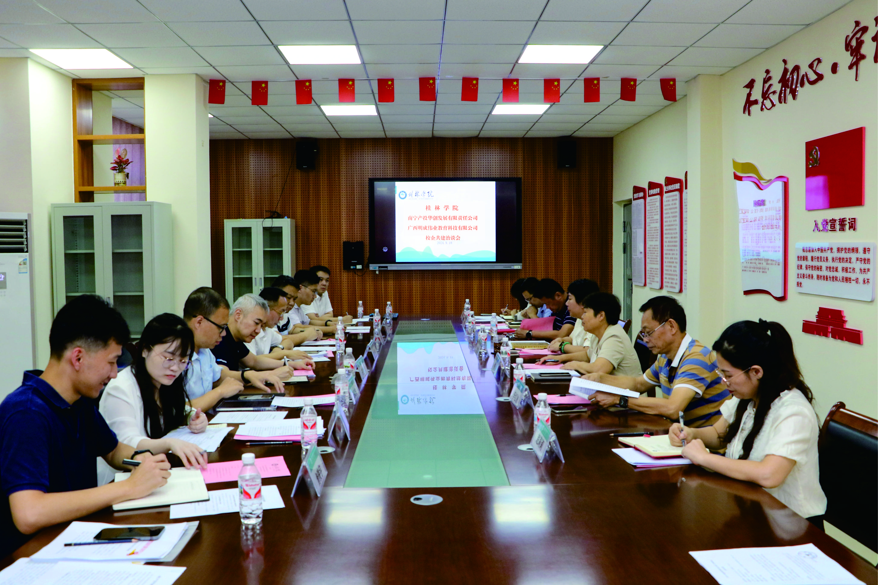 会上,高胜刚总经理介绍了南宁产投集团和南宁华创的发展情况,他表示,南宁产投集团是南宁市人民政府的国有独资企业,南宁华创是南宁产投集团全资子公司,负责集团产教融合发展的整体业务,在助推南宁市创建国家产教融合试点城市方面起到了重要作用。南宁华创期待与桂林学院深度合作,进一步拓展产教融合的领域和深度,为促进广西经济高质量发展、建设壮美广西添砖加瓦。叶涌董事长表示,广西明成伟业作为南宁华创产教融合业务的战略合作伙伴,深耕广西产教融合领域,拥有广泛的资源,公司将大力推动三方合作,拓展校企合作业务版图,助力学校可持续发展。