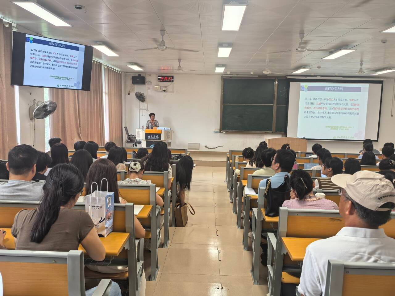本次培训特邀全国普通高等学校本科教育教学评估专家、广西教育政策与法治研究专家库首批入选专家林翠英教授担任主讲。林教授紧扣教学实际,系统阐述了教学大纲的编制规范、评估要点及常见问题,并深入剖析了教案作为课堂“施工图”的核心要素与设计方法。培训内容详实,针对性强,为新教师们提供了清晰实用的专业指引。