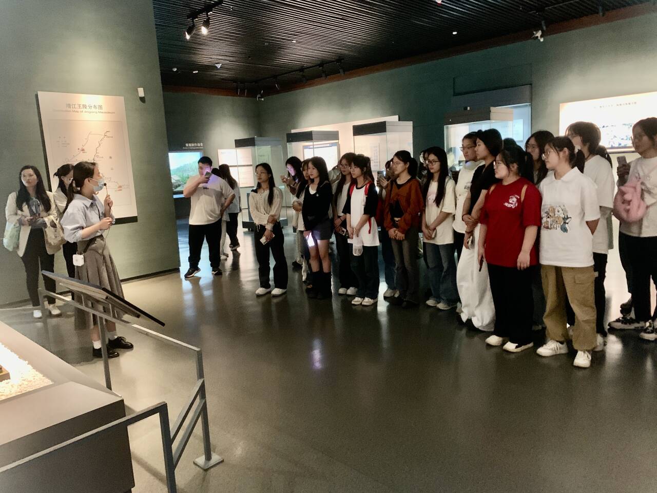 学生们认真听讲解员解说
