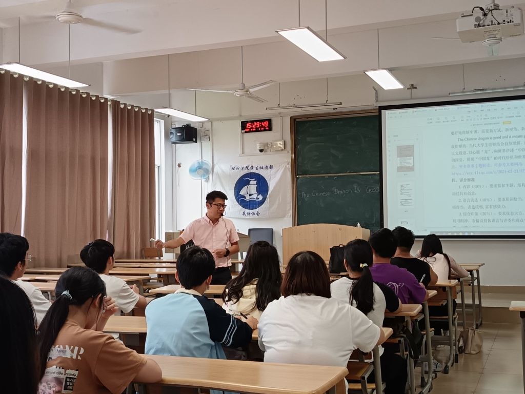 本次备赛讲座帮助参赛选手们深化了对本次英语演讲赛主题Chinese Dragon Is Good的认知和理解,使选手们能够从多个维度全面把握赛事的要点和要求。参加讲座的同学表示,无论是在知识储备、技巧掌握还是心理建设等方面,老师的辅导都给予了同学们有力的支持和引导,为他们在比赛中斩获更好的成绩做好了充分的铺垫,也让他们在迈向比赛乃至英语过级考试的道路上更加自信从容,充满期待与动力。