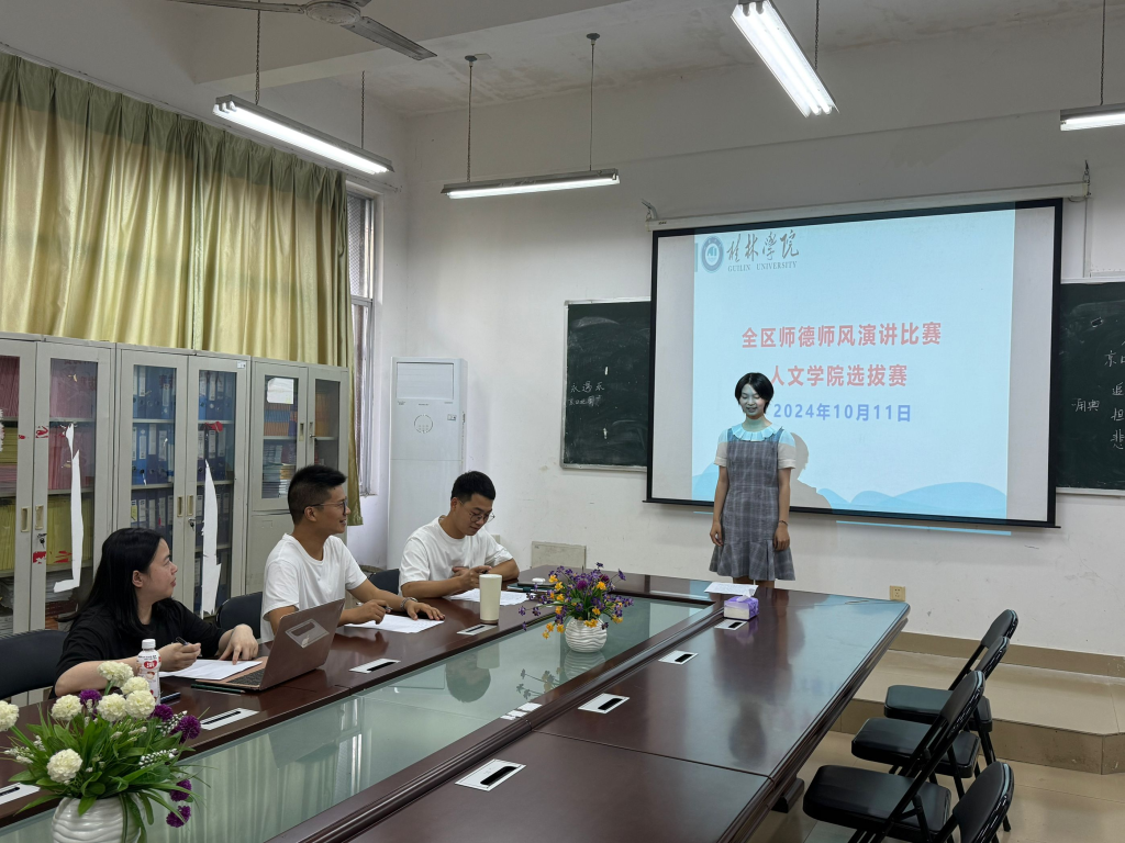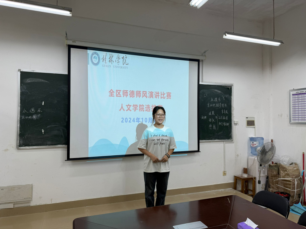 10月11日上午,人文学院在2018会议室成功举办了一场以“弘扬教育家精神,加快建设教育强国”为主题的全区师范生演讲比赛选拔赛(中文类专场)。此次活动旨在引导大学生深入理解师德师风的重要性,培养他们的教育情怀和职业素养,学院多位中文类专业学生参加了选拔。比赛由陈霞、钟锟、邓克鹏三位老师担任评委。