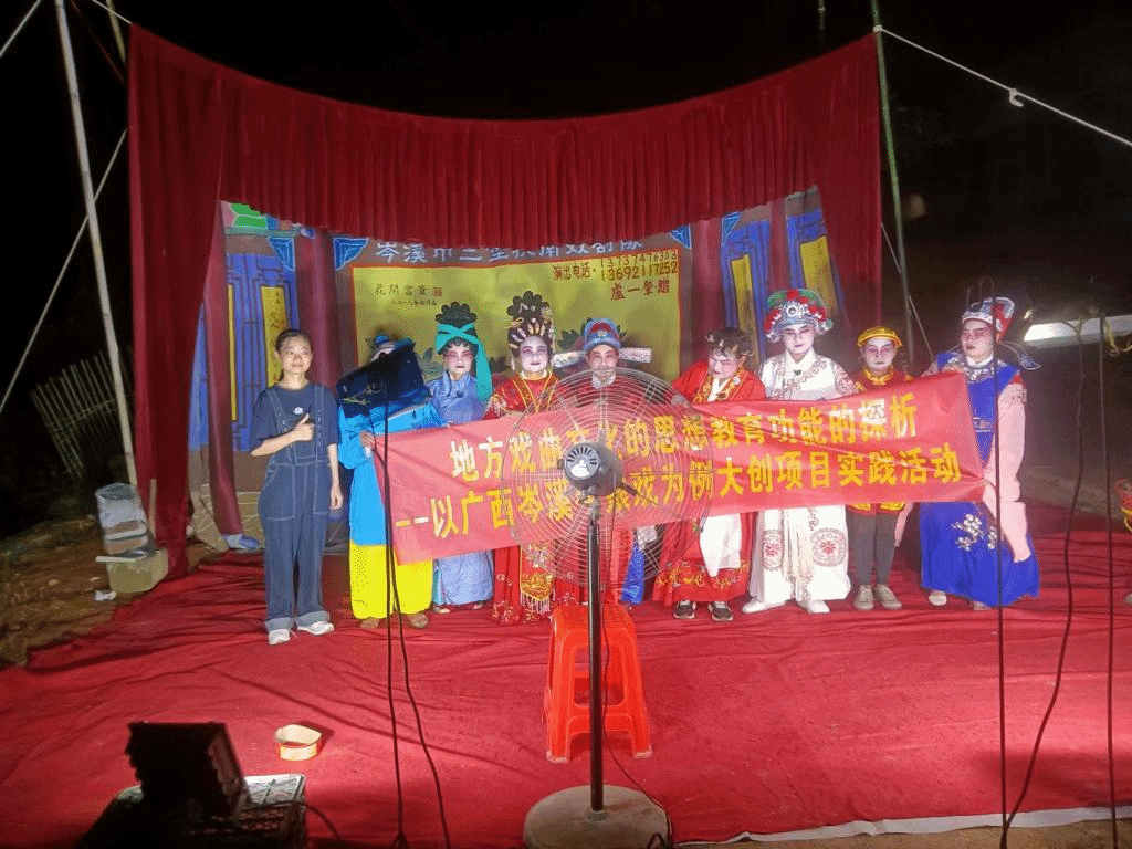 为更好的弘扬地方戏曲传统文化,让更多人了解地方戏曲文化,加深对地方戏曲的认识,2023年8月29日至9月30日,人文学院大创学生团队(地方戏曲文化的思想教育功能的探析——以广西岑溪牛娘戏为例)赴岑溪开展线下调研活动。