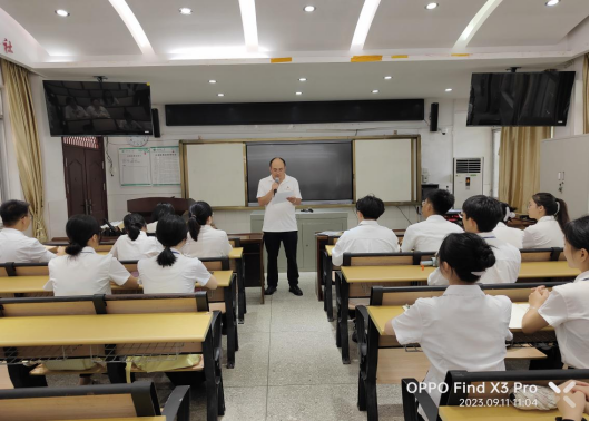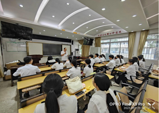 (图:桂林市第十一中秦副校长给实习生们开见面会)