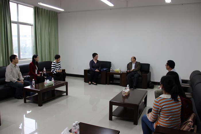 在座谈中,郝社长就清华大学出版社外语分社与我院外语系合作进行教材建设进行了交流和沟通,并且就5月17日我院外语系与清华大学出版社外语分社联合举行的“2014年高校英语教师教学发展研讨会”的具体事宜作了详细的沟通和落实。蔡院长和郝社长都表达了双方开展深入合作的意愿。蔡院长希望通过合作促进外语系教师的发展和成长。