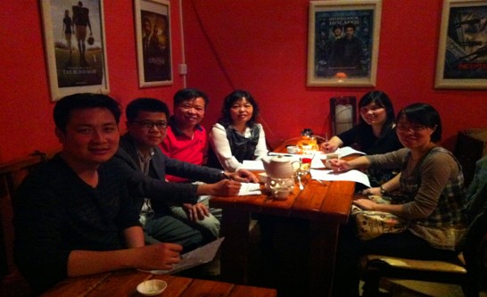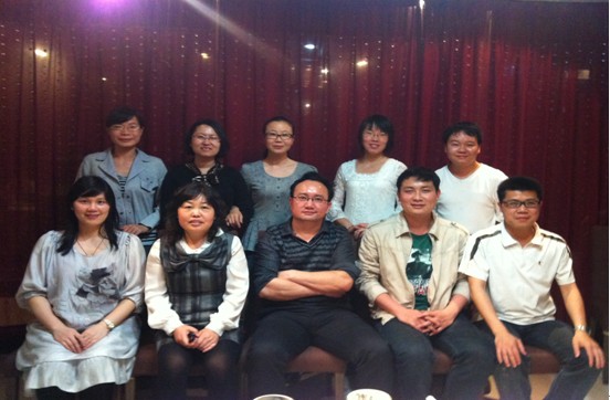 2012321晚参赛组成员和技术专家讨论参赛课件并留影