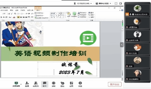 在比赛前期,欧炼芬老师于2023年7月通过腾讯会议给参赛选手们进行了短视频制作培训。在培训过程中,她给参赛选手详细地介绍了此次比赛视频制作的要求,认真地给参赛选手们讲解了视频的制作方法和注意事项。参赛选手利用暑假充裕的时间进行作品创作。