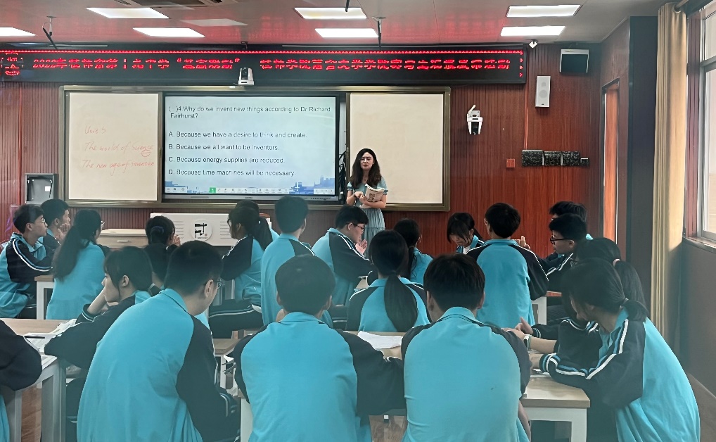 高中同课异构由桂林市第十九中学黄慧雯老师和实习生张羿同学在录播室分别执教。黄慧雯老师的课堂教学分为两部分,前20分钟结合前置作业和课前预读活动完成教材文本的阅读;后20分钟学生展示,以小组为单位借助课前完成的发明设计图讲解设计,并回答其他同学提出的问题。黄老师的整个教学体现了“以生为本,数字赋能”的教学理念,突出了对学生语言表达能力的锻炼,关注学生后续发展。实习生张羿同学围绕课文主题,以视频的形式点燃学生的激情,教学在丰富多样的活动中有条不絮的层层递进,课堂内容充实,并针对主题进行了探究。初中实习展示课由实习生王洁宇同学执教,课堂主题分明,重难点突出,课堂用语简洁明了,指令清晰,循循善诱,课堂活动以学生为主,课堂氛围活跃。