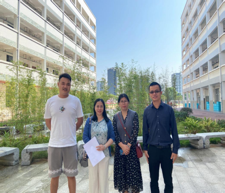 十九中副校长骆骏(右一)、副主任沈章权(左一)和陆海峡、陈霞两位老师合影
