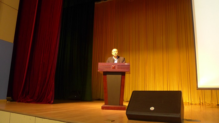 蔡昌卓院长首先作了关于培养应用型、国际化人才的报告。他强调,随着全球经济一体化的发展,特别需要与国际接轨的高端型专业化人才。蔡院长鼓励同学们努力学习专业知识,并具有与时俱进、不断进取的时代精神,争取成为国际化的应用型人才。在报告中,蔡院长还与同学们分享了个人的学习、工作经历,强调梦想的重要性。他深情地说道:“人应该胸怀梦想,并为此坚持和奋斗!”,赢得了全场热烈的掌声。