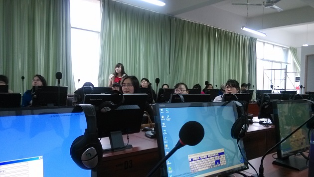 近日,外语系领导、蓝鸽集团有限公司技术人员及部分教师在3411同声传译语音室举行训练系统培训会。同声传译语音室的建成为外语系翻译专业高年级的交替传译及同声传译等课程的实践教学提供了必要保障,也使我院具备了举办小型同传会议的硬件条件。