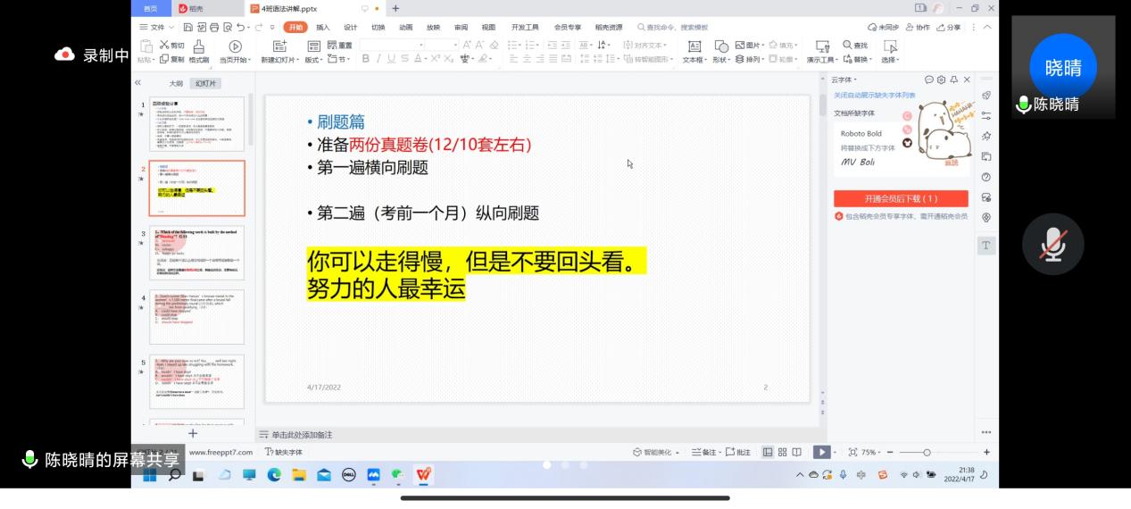 为了进一步推进我院英语语法课程助教工作的开展,4月17日晚,语法团队英语语法助教期中工作检查会议在腾讯会议召开,黄彦立老师主持会议,唐茂妮老师、蔡晓明老师以及八位2020级语法助教参加会议。