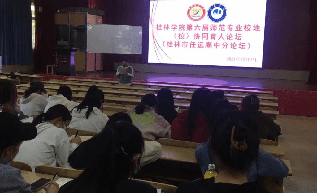 为了给教师提供交流互动的平台,促进教师的专业化发展,提升教育实习质量,12月2日下午,桂林学院和桂林任远中学携手举办了第六届协同育人论坛。任远中学高中部教研处粟月主任,高中英语组全体老师,桂林学院陆海峡老师和2019级英语专业80余位学生共同参与了本次研讨活动。