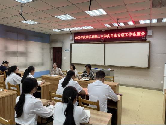 为促进师范生的培养,进一步巩固师范生教育知识与教学能力,人文学院2020级汉语言文学专业和英语专业共计32名实习生在刘渊老师和欧炼芬老师的带领下,于2023年9月12日前往桂林市雁山中学开展实习生师生见面会。