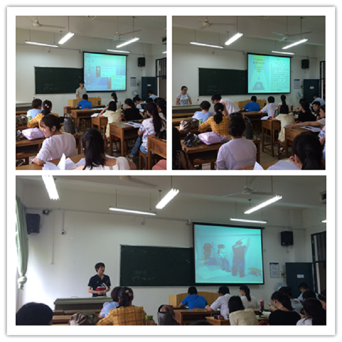在接下来的环节中,周燕萍、俞蓓、覃浩三位老师分别登台发言,介绍近期赴外地学习、培训老师的心得与体会。周燕萍老师以“英语专业的创新与发展”为题指出,文科教师面临着转型发展的形势,教师应该在应用实践型教育方面做好引导作用,使理论学习与技能获得相互补充,达到平衡。俞蓓老师发言的题目是“文华在线与英语课堂的融合”,重点介绍了文化在线供应商提供的信息技术与自己的教学的深度融合,以及互动教材、教学云平台、教学服务整合一体的混合式学习服务的体验;覃浩老师则以“蓝鸽与外语教学之我见”发言,大学英语教学应该牢牢以学生需要为指导,以effective learning为中心,既要体现提升学生综合素质与全面发展的育人价值,也要体现对基础语言能力的重视。