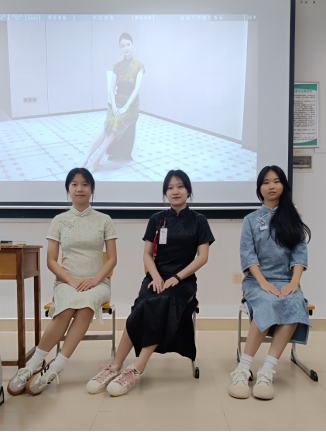 在旗袍展示环节,谢索菲与学生们探讨了旗袍的魅力,详细介绍了旗袍的历史、款式以及它所代表的文化意义,并带领学生们一起学习旗袍礼仪。随后,学生们穿上旗袍,感受这种传统服饰带来的身体和心灵的触动,体会到传统与现代、东方与西方的交融。