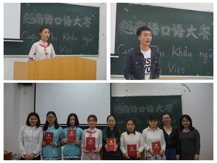 随着我系第十二届外语文化节序幕的拉开,漓江学院第四届越南语演讲比赛也接踵而至。为实现我校越南语专业人才培养的“应用型”、“复合型”目标,全面提高越南语专业学生的综合素质,以及越南语专业的“以赛促教,以赛促学”的教学目的,同时为参加“第八届全国大学生越南语演讲大赛”选拔更优秀的专业选手。4月25日晚18:00,由我校越南语教研室组织在我校一区1405教室进行“漓江学院第四届越南语演讲比赛”。参加本次比赛的选手为我校越南语专业大一、大二的全体学生,并由我校越南语专业的全体教师担任评委。