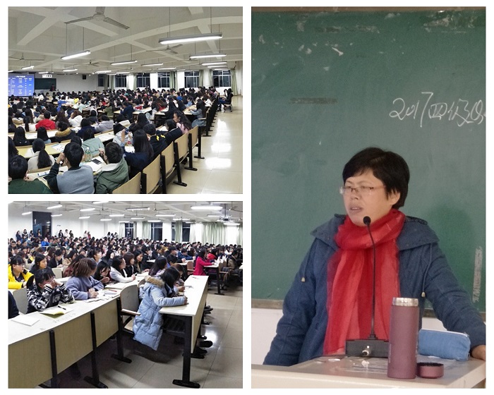 3月8日晚,由外语系主办、桂林文都教育协办,主题为“大学英语四级考试(CET4)题型解读”的讲座在我校公共教学楼001教室举行。讲座由四级考试阅卷老师、广西师大外国语学院教授陆巧玲主讲,外语系大学外语第二教研室主任覃浩老师主持。