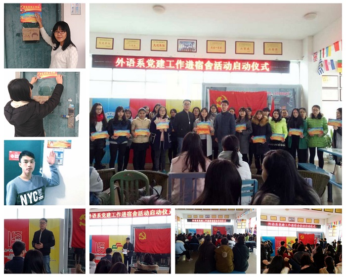 外语系党建工作进宿舍活动将覆盖全系三个年级的80间宿舍,涉及党员、预备党员、入党积极份子130人,建立党员工作站3个,并以此为基础开展“一对一帮扶”、“党建先进寝室”等活动。