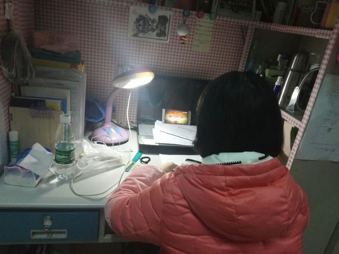 外语系2014级115寝室成员认真观看学习《长征》,仔细做学习笔记。