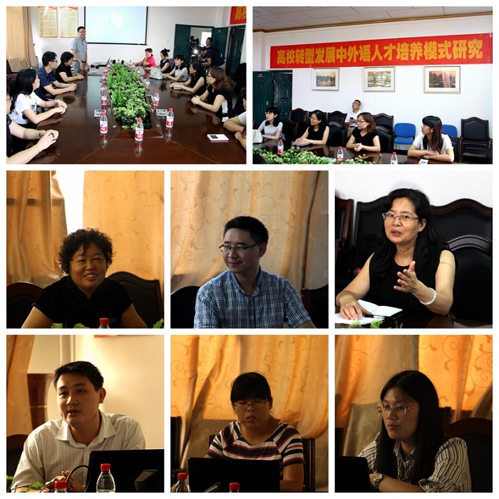 会议的第二阶段在3208会议室进行,双方就互联网+形式下的外语教学探索以及大学外语教学改革进行了广泛的交流与深入的探讨。肖立章老师首先就MyET口语平台的建设以及如何通过口语平台提高全院大学生英语口语能力进行了展示。之后,英语专业与大学英语的教研室主任以及骨干教师就我校外语系今年的发展进行汇报。陆海峡老师对大学英语多媒体课件设计与团队建设进行了精彩的介绍,黄文敏老师对多功能语言实验室与大学英语无纸化考试创新进行了总结与反思。