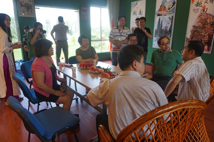 首先,杨树喆院长向调研组介绍了漓江学院整体办学情况,对我校办学理念与办学特色、办学设施、国际交流、学科建设、招生就业、人才培养等方面进行了全面的介绍;接着,杨庆庆副院长对我校转型发展所采取的教学改革措施作了汇报,包括:与企业对接的订单班设立,积极探索“英语+泰语+越南语+法语”的新型大学外语教学改革,以慕课形式试点推行通识课程改革,强化校内外实践教学环节,加快建立跨系、跨学科教学交叉互动机制等。最后,调研组在中心听取了外教Kara讲授的美国国家概况、赵莉莉老师的西方餐桌礼仪和石仁春老师的泰国礼仪实训等三门课程。
