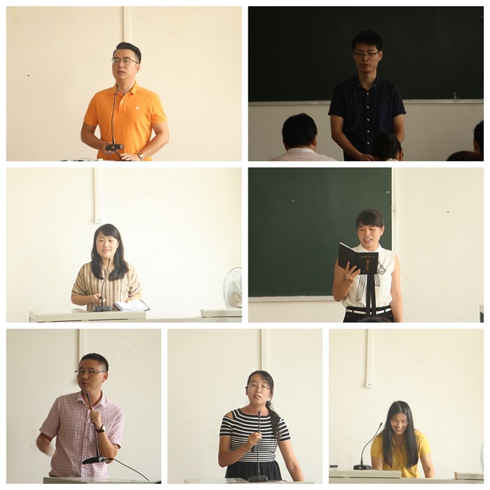 2016年9月4日上午,外语系全体教师在1501教室召开了本学期第一次全体会议,研讨专业转型发展的背景、难点和路径选择。首先,外语系教师团队把在假期进行的教学改革以微课形式向全体教师进行了展示。接着,系党总支书记陈俊杰老师汇报了2016届学生招生就业工作,并对下一步的招生和就业进行了反思。同时结合外语类人才社会需求分析了当下就业形势,对我系接下来的学生就业及开学工作进行了具体的布置。紧接着,系党总支副书记葛巍老师对本学期的学生工作进行了规划,并希望任课教师能够配合系里工作并积极参与学生活动。接下来,周艳萍、黄文敏等六位教师对暑假研修收获进行了分享,并规划了转型背景下外语系商务英语、英语、翻译等专业人才培养的举措,为大家呈现了教学改革的新视角、新思路。随后,系副主任张超锋老师汇报了假期工作,提出了我系教学工作遇到的问题,并对本学期的近期教学工作进行了详细的安排。