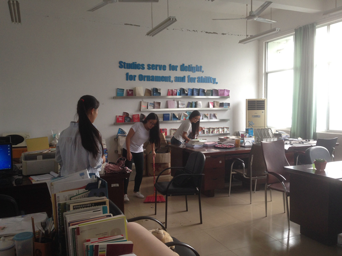 2016年9月9日下午5时许,外语系团学干部、干事等工作人员聚集二区五楼外语系外语角,为辛勤付出的外语系教师们打扫办公室并献上最诚挚的祝福。