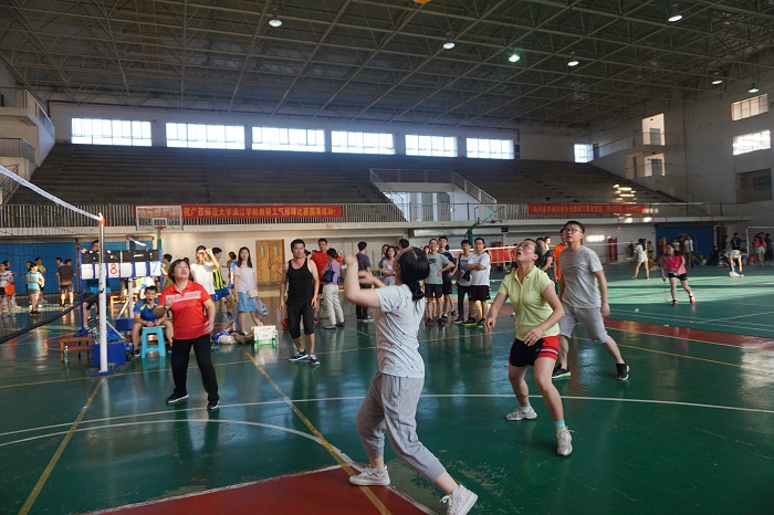 为了丰富教师的业余生活,提高教师的职业技能,注重教师的身体健康,增强教师的体育素质,加强同事之间的交流与合作,2016年6月1日下午,漓江学院外语系教师与学工处教师在体育中心进行了排球比赛。