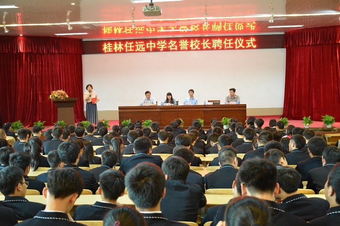 仪式首先由潘济华副处长向任远中学全体老师同学们致辞,接着,任远中学校长徐宏宣读了《关于聘请何玲同志为任远中学名誉校长的决定》,郑重地将聘书颁发到何玲副教授的手中。在全场热烈的掌声中,何玲校长发表了热情洋溢的讲话,她说:能受聘为任远中学的名誉校长学是十分荣幸的一件事情,因为这是任远中学历史上的首次,也是漓江学院办学历史上的第一次,与此同时也感受到肩上责任的重大,任远中学是一所桂林真正意义上的第一所民办中学,拥有优美的校园环境、现代化的办学设施、良好的发展势头,这一切都为将来的发展打下了坚实的基础,作为名誉校长仅仅是一个新的起点,将来一定担起责任,为学校的发展出好谋,化好策,尽好力,也希望同学们把握努力方向,好好学习,天天向上。