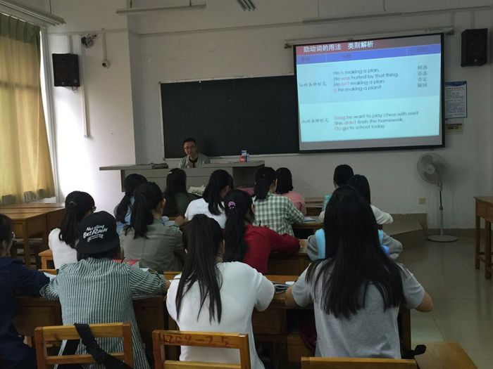 主讲教师张超锋老师在2015级英教5班的语法课上讲授了《 英语语法2 》 Unit7 动词类别的相关内容。在此次课堂上,授课老师运用多样化的教学方法,让略显枯燥的语法知识点通过生动清晰的方式一一呈现出来,授课老师思路清晰,循循善诱,引导学生们了解动词类别的相关内容,同时培养学生对此类知识点的综合运用能力。学生积极参与课堂,师生间互动活跃,取得较好的教学效果。