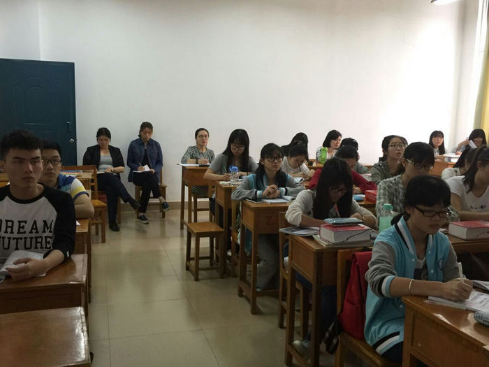外语系老师及15级英语专业学生在认真聆听公开课