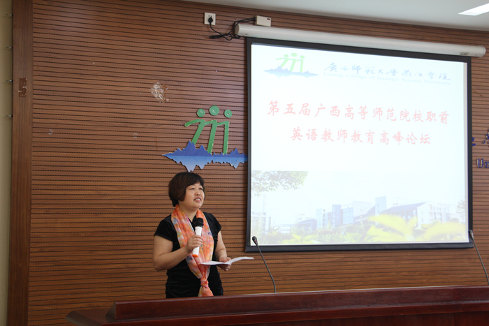 受广西高校本科英语教学指导委员会委托,广西师范大学漓江学院外语系于2016年4月28日至29成功举办第五届广西高等师范院校职前英语教师教育高峰论坛。来自广西20所高校的40名院长、系主任、骨干教师参加本届论坛,