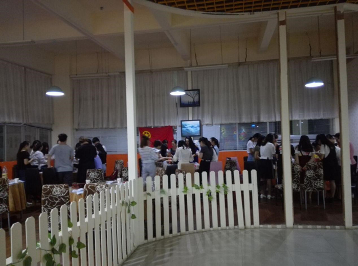 5 月5日晚,外语系2014级英语第三团支部在食堂三楼舞台举行了“弘扬传统文化,构建特色校园”自选主题团日活动,此次活动旨在通过展示剪纸艺术,欣赏民族音乐和包饺子厨艺比拼,向支部团员传播中国传统文化的和谐因素,号召同学们将求同存异,和而不同的传统文化与建设特色团支部结合起来。外语系团总支副书记、年级辅导员周俊巧老师出席了此次活动。
